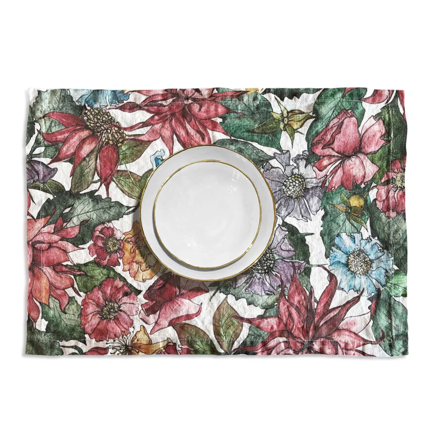 Hand painted by our Founder and Creative Director, Caryn Hibbert, all of our original prints depict the flora and fauna that inhabit Thyme’s garden, farm and wild spaces. The prints are then repeated by her husband, Jerry, before being scaled by our expert team in Lithuania onto beautiful, washed European linen.Â