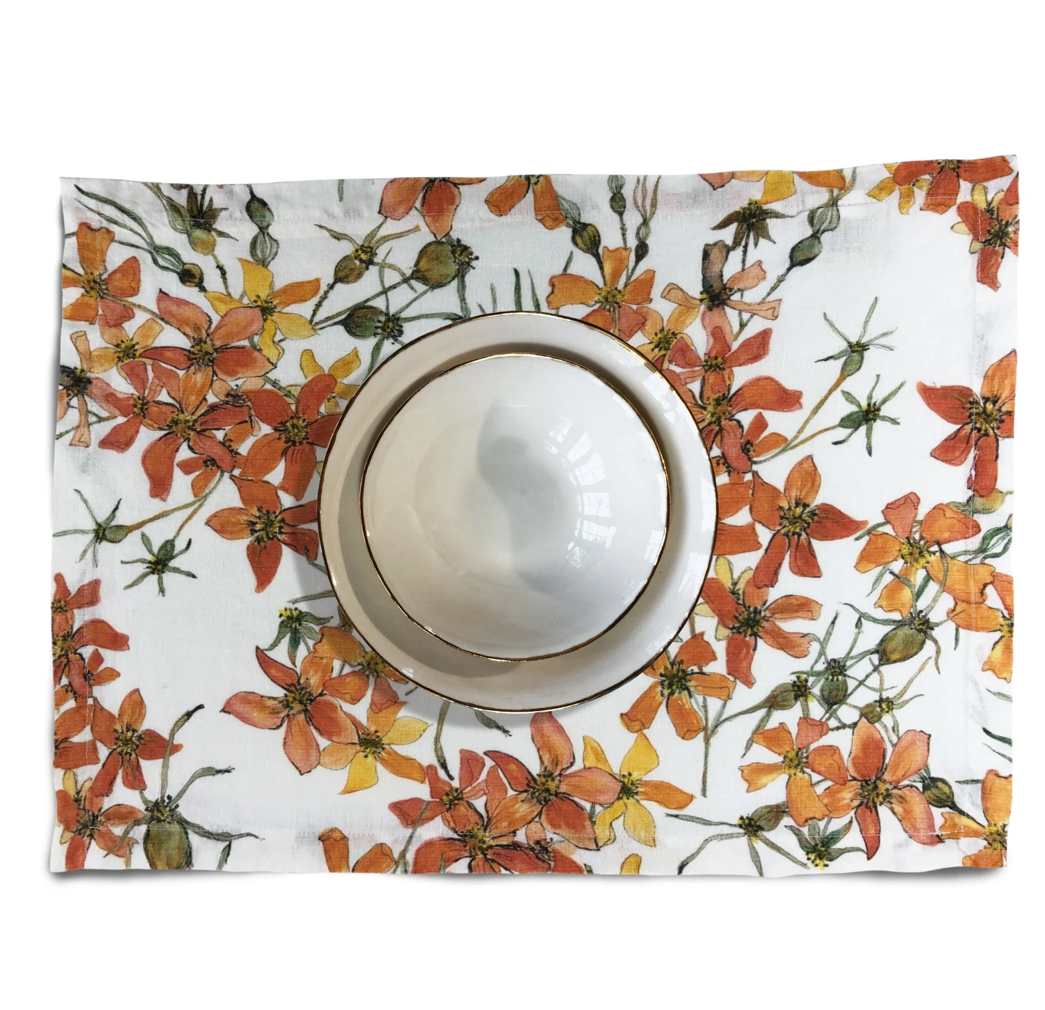 Hand painted by our Founder and Creative Director, Caryn Hibbert, all of our original prints depict the flora and fauna that inhabit Thyme’s garden, farm and wild spaces. The prints are then repeated by her husband, Jerry, before being scaled by our expert team in Lithuania onto beautiful, washed European linen.Â